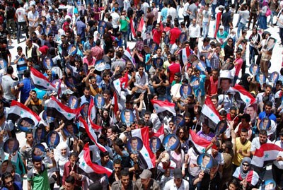 ورأى المشاركون الذين حملوا الأعلام الوطنية واللافتات المعبرة عن “دعمهم المطلق للجيش والقوات المسلحة في مواجهة الإرهاب” أن المرشح الدكتور بشار الأسد يعبر عن تطلعاتهم في صون البلاد واستمرار صمودها وإعادة الأمن والأمان والاستقرار إليها.