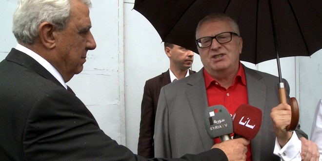 وأضاف جيرينوفسكي “نحن نتمنى لسورية أن تتمكن من القضاء على تنظيم داعش الإرهابي واحباط هجمات من يسمون أنفسهم بالمعارضين” معتبرا أن هؤلاء ليسوا معارضين بل “انتهازيون يتلقون الدعم والتأييد من قبل الغرب عموما والولايات المتحدة على وجه الخصوص وكذلك من بعض البلدان العربية مثل قطر والسعودية وهم إرهابيون مرتزقة يقاتلون من أجل النقود ولا يكترثون بمن يطلقون النار عليه”.