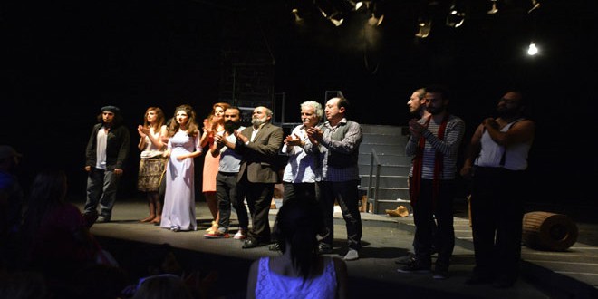 كما استطاع “مدينة في ثلاثة فصول” الإطلالة على مسرح الحرب والتنويع عليه من خلال قدرات الممثلين في أداء جماعي حاول كل من المخرج وصاحب الاقتباس إعادته إلى شروط المسرح الواقعي من خلال المؤثرات الصوتية التي عكست بدورها أجواء القصف والقذائف ناقلةً جحيم الحرب وفداحتها ومصائر الشخصيات في مواجهة الموت عزلاء ويائسة ومتهالكة نحو قدرها المحتوم.
