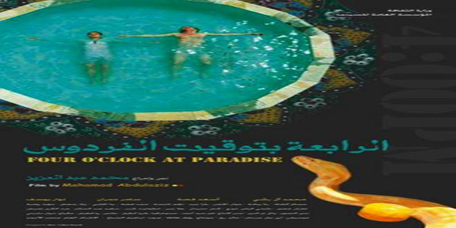 ويروي فيلم “الرابعة بتوقيت الفردوس” الذي الفه واخرجه محمد عبد العزيز وأنتجته المؤسسة العامة للسينما عام 2014 الكثير من التفاصيل الحياتية المعاصرة التي تقدمها شخصيات تمثل شرائح اجتماعية مختلفة من بائع متجول إلى مثقف سياسي مرورا بعاشقين تعثرت مسيرة حياتهما وكذلك عامل الرافعة الذي يرغب بعدم مغادرة وطنه رغم الظروف وغير ذلك من الأحداث.