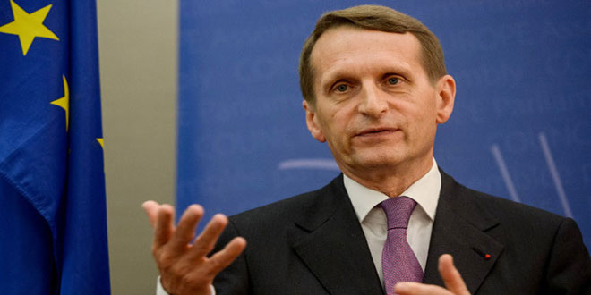 وكان ناريشكين اكد في تصريح له امس ان منظومة الامن الدولية تعيش اليوم أوقاتا عصيبة موضحا أن “الاعتماد على القوة والاستهتار بسيادة البلدان الأخرى والثقة العمياء من قبل النخب السياسية والعسكرية الامريكية بعدم اثمها ونجاتها من العقاب خلال عقود من السنين أدت إلى نشوب الأزمات فى عدد من الدول كالعراق وسورية وليبيا واوكرانيا ويوغسلافيا “.