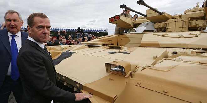 وقال مدفيديف خلال مراسم افتتاح المعرض الدولي العاشر للأسلحة والمعدات والذخائر في مدينة نيجني تاغيل الروسية كما نقل موقع روسيا اليوم إن “مداخيل تجارة الأسلحة تشكل قسطا مهما في ميزانية روسيا” مشيرا إلى أن حجم طلبيات الأسلحة الروسية يبلغ/40/مليار دولار وتهتم موسكو بزيادة هذا الرقم.