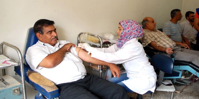 حماة-سانا نظمت شعبة ريف حماة لحزب البعث العربي الاشتراكي اليوم حملة تبرع بالدم في مقر …