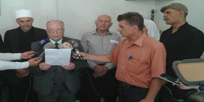 من جهة أخرى أعرب آل نعيم واقرباؤهم في محافظة السويداء في بيان أصدروه اليوم تلقت سانا نسخة منه عن “رفضهم وإدانتهم لكل الأعمال الارهابية التي تتعرض لها سورية ووقوفهم ضد أي أيد عابثة بسلامة الوطن وأمنه ومؤسساته الخاصة والعامة”.