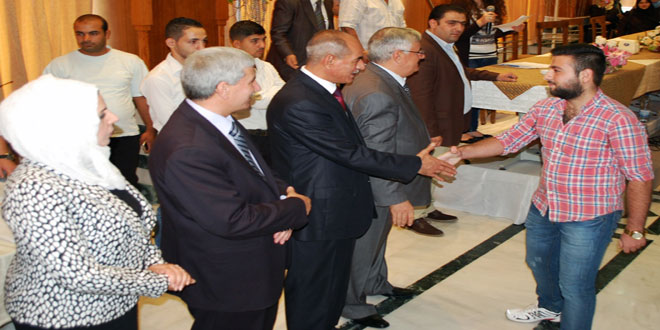 كرم فرع نقابة المهندسين في حماة 76 طالباً من المتفوقين من أبناء المهندسين في الشهادتين الثانوية العامة والتعليم الأساسي لعام 2015/ .