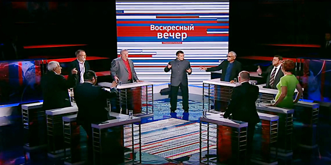 شارك في البرنامج رئيس الحزب الليبرالي الديمقراطي الروسي فلاديمير جيرينوفسكي والمخرج السينمائي رئيس مؤسسة “موس فيلم” كارين شيخنازاروف ومدير معهد الشرق الاوسط يفغيني ساتانوفسكي والمحلل السياسي سيرغي ميخييف والنائبة في البرلمان الاوروبي عن إستونيا يانا توم والنائب عن البرلمان الاوروبي عن لاتفيا أندريه ماميكين والصحفي من اصل مصري تيمور دويدار وتولى تقديم البرنامج الإعلامي الروسي المعروف فلاديمير سولوفيوف.