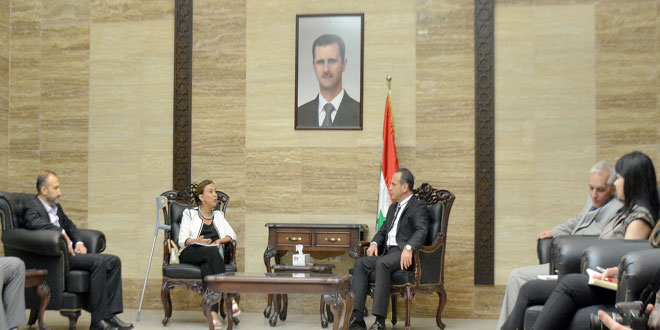 بحث وزير الصحة الدكتور نزار يازجي مع الممثل المقيم لمنظمة الأمم المتحدة للطفولة “اليونيسيف” هناء سنجر اليوم مجالات التعاون المشتركة بين الجانبين وسبل تعزيز نقاط القوة وتذليل الصعوبات التي تعترض آلية العمل.