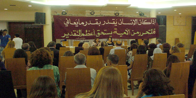 بدورها بينت رئيسة دائرة تعليم الكبار بالسويداء صالحة الحجلي أن الاحتفالية تتضمن مجموعة من النشاطات لمدة ثلاثة أيام وسيتم خلالها إطلاق خطة عمل لمدة عام في مجال “الأمية الحضارية” تتضمن مجموعة نشاطات ثقافية وورشات عمل وندوات ومحاضرات وكذلك تشكيل لجان لمتابعة الوافدين تعليميا .