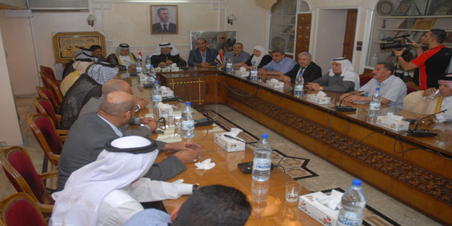 من جهته أكد التميمي أن هدف الزيارة هو التضامن مع فلاحي وشعب سورية التي تدفع ثمن موقفها القومي والعروبي داعيا الى توجيه الكلمة والبندقية تجاه العدو المشترك لسورية والعراق.