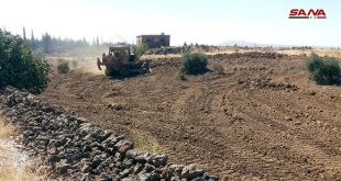 باشرت دائرة مشروع التشجير المثمر بمديرية زراعة القنيطرة اليوم أعمال استصلاح الأراضي الزراعية في المناطق الآمنة في المحافظة.