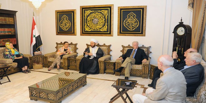 وخلال لقائه اليوم وفدا إعلاميا امريكيا من مؤسسة فيترانس توداي الأميركية أشار المفتي حسون إلى أن جميع الشرائع السماوية هدفها بناء الإنسان وسعادته والحفاظ على كرامته منوها بزيارة الوفد الأمريكي الذي استطاع أن يأتي إلى دمشق في هذه الظروف ليطلع على حقيقة ما يجري متجاهلا ما تروجه وسائل الإعلام المغرضة.
