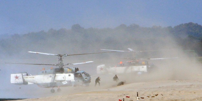 ونقلت وكالة نوفوستي الروسية عن المكتب الصحفي للوزارة قوله إنه “وكجزء من تدريبات المركز 2015 نفذت أطقم المروحيات التابعة لسلاح الدفاع الجوي الروسي مناورات لتقديم تغطية جوية للقوات البرية”.