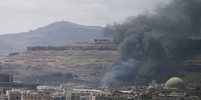 وقال مصدر أمني مسؤول بالمحافظة لوكالة الأنباء اليمنية سبأ “إن طيران العدوان السعودي نفذ خمس غارات جوية استهدفت مدينة القاعدة التابعة لمديرية ذى السفال في إب أدت إلى استشهاد عشرة مواطنين وجرح أكثر من خمسين آخرين وتدمير مبنى الأمن بالمدينة والمنازل المجاورة له”.