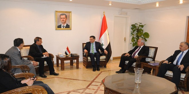 بحث وزير التعليم العالي الدكتور محمد عامر المارديني اليوم مع ممثل صندوق الأمم المتحدة للسكان في سورية ماسيمو ديانا آفاق التعاون بين الجانبين في القضايا والبرامج المشتركة الهادفة إلى تعزيز دور الشباب وتطوير مهاراتهم وتقديم الدعم النفسي الاجتماعي والرعاية الصحية للمرأة والتخفيف من معاناتها جراء الأزمة الراهنة.