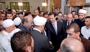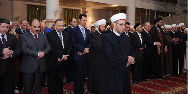 وأدى الصلاة مع الرئيس الأسد كبار المسؤولين في الحزب والدولة ووزير الأوقاف والمفتي العام للجمهورية وعدد من علماء الدين الإسلامي وجمهور من المواطنين مؤتمين بفضيلة الشيخ الدكتور أحمد سامر القباني مدير أوقاف دمشق.