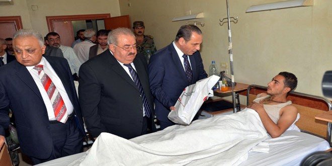 إلى ذلك زار الوزير يازجي ومحافظ حلب يرافقهما قائد المنطقة الشمالية وقائد شرطة المحافظة جرحى الجيش العربي السوري في مشفى الشهيد عبد الوهاب سليمان آغا واطمأنوا على أوضاعهم الصحية وقدموا لهم الهدايا بمناسبة حلول عيد الأضحى المبارك متمنين لهم الشفاء العاجل.
