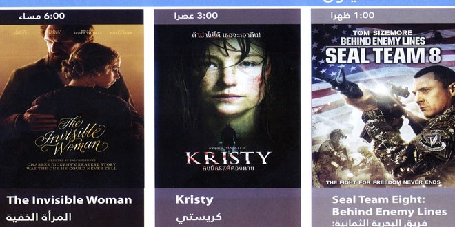 والفيلم الأول لهذا اليوم الثلاثاء عند الواحدة ظهرا بعنوان “فريق البحرية الثمانية خلف خطوط العدو” للمخرج رويل رين من إنتاج 2014 ومدة عرضه 98 دقيقة وهو من تأليف بريندان كولز/ شين كون/ رويل رين .. ومن تمثيل توم سيزمور/ليكس شرابنل/ انتوني اوسيمي.
