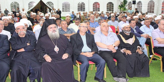 وحضر المهرجان عدد كبير من الشخصيات السياسية والاجتماعية في فلسطين المحتلة يتقدمهم المطران عطا الله حنا رئيس أساقفة سبسطية للروم الأرثوذكس الذي أكد “أن سورية اليوم تسجل الانتصار تلو الانتصار بهمة جيشها البطل وصمود شعبها الكبير” مستنكرا مجازر الاحتلال في الأقصى ومشددا على “إننا مسيحيون ومسلمون واجبنا الدفاع عن الأقصى وكل المقدسات الفلسطينية”.