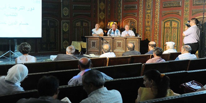 وفي محاضرته التي حملت عنوان “دور الترجمة في التنمية الوطنية” عرض الأديب والمترجم حسام الدين خضور مقرر جمعية الترجمة في اتحاد الكتاب العرب عددا من الدراسات لباحثين سوريين تناولوا دور الترجمة في عملية التنمية معتبرا أنه يغلب على معظم هذه الأعمال الوصف والطابع التقريري فتقدم أحكاما تقنع بصحتها القارئ من دون الخوض والبحث في دليل أو برهان.