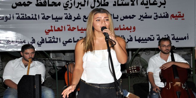 أقامت غرفة سياحة المنطقة الوسطى حفلا فنيا أمس الأربعاء في فندق سفير حمص بمناسبة يوم السياحة العالمي تضمن العديد من الانشطة الغنائية والتراثية قدمتها فرقة النادي الاجتماعي الثقافي.