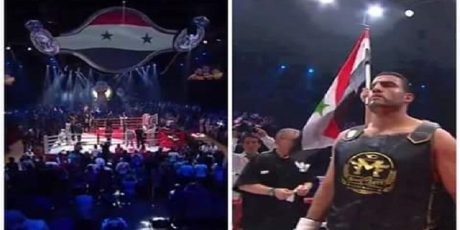 وأوضح أبناء الجالية أن هدف التكريم هو توجيه التحية للملاكم الدولي الذي حرص في كل مبارياته على تأكيد انتمائه لوطنه سورية ومحبته له رغم كل الظروف من خلال رفع العلم السوري في كل المباريات والبدء بالنشيد الوطني.