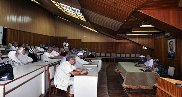وأضاف المحافظ سنعمل باستمرار من أجل إيجاد نقاط تفيد في توفير حالة من التهدئة توفر ظروفا ملائمة من أجل إعادة الأمن والاستقرار إلى حي الوعر مؤكدا “أن ذلك سيتم من خلال اللجان المحلية المشتركة والسعي لتجاوز بعض العقبات وفقا لتوجيهات القيادة وتوفير فرص للراغبين بالعودة الى حضن الوطن في حي الوعر للاستفادة من مرسوم العفو العام للوصول من خلال ذلك إلى تحقيق مصالحة شاملة”.