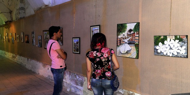 ويضم المعرض الذي يستمر يومين 70 لوحة تحكي عن التراث السوري بشكل عام ودمشق على وجه الخصوص وتاريخها وآثارها ويعكس الطبيعة السورية بمختلف تجلياتها.