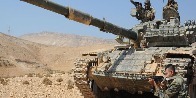وتواصل وحدات من الجيش بإسناد من سلاح الجو حربها على الإرهاب التكفيري في مزارع وقرى الغوطة الشرقية حيث ينتشر ارهابيون تكفيريون ينضوون تحت زعامة تنظيم “جبهة النصرة” وما يسمى “جيش الاسلام” و”لواء الاسلام” ويتلقون تمويلا وتسليحا من نظام آل سعود الوهابي.