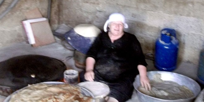 لم تمنع سنوات عمر هند النجم التي تجاوزت الرابعة والستين وألمها على فراق ابنها الشهيد قصي منصور قيسية من متابعة مسيرة حياتها وإقامة مشروع صغير لصناعة الخبز العربي في بلدة الغارية بريف السويداء .