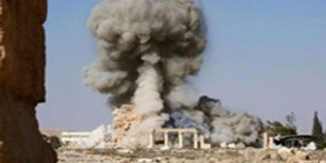 وتتعرض مدينة تدمر منذ مطلع حزيران الماضي لسلسلة من الاعتداءات التى يرتكبها ارهابيو التنظيم التكفيري حيث دمروا المدافن التدمرية البرجية باستخدام كميات كبيرة من المتفجرات ووضعها بين الطوابق التى تتالف منها هذه المدافن وحطموا تمثال أسد اللات الشهير وثمانية تماثيل أخرى وحولوا متحف المدينة الوطنى الى سجن وما يسمى “محكمة شرعية” ودمروا معبد بعل شمين وارتكبوا جريمة قتل العالم والباحث خالد الأسعد بقطع رأسه.