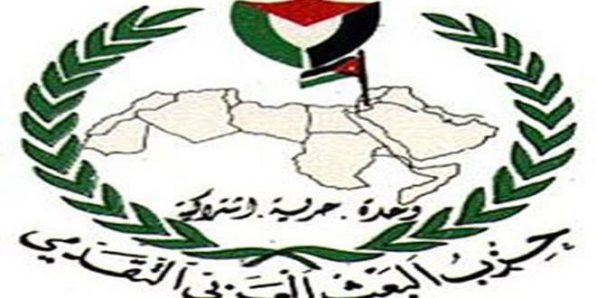 ولفت الحزب في بيانه إلى ما تواجهه الأمة العربية حاليا من تحديات تهدد هويتها ووحدتها الوطنية ووجودها ومستقبلها كأمة حيث العدوان الامبريالي الصهيوني الاستعماري وأدواته في الإقليم والمنطقة وفي مقدمتها العصابات الإرهابية التي تمارس التدمير في سورية والعراق وليبيا واليمن وتونس ومصر وغيرها من دول الوطن العربي.