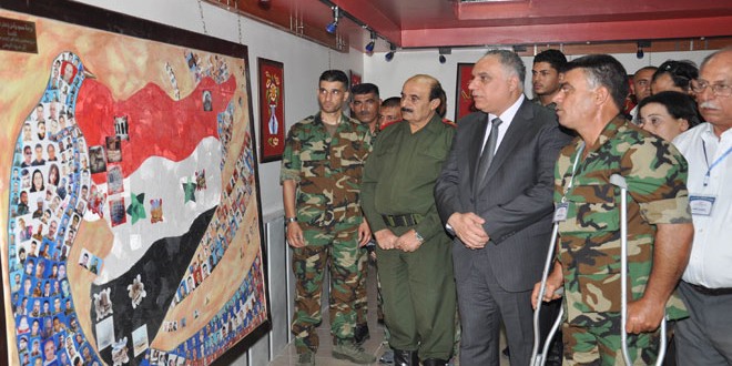 ولفت المحافظ إلى الدور الهام للجرحى وقدرتهم على ترسيخ القيم والثوابت الوطنية وإيضاح ما جرى من أحداث للأجيال القادمة بكل صدق وشفافية تؤكد على المسؤولية الملقاة على عاتق الجرحى في تربية وانشاء جيل واع ومدرك لما مر بسورية من أحداث ونوه البرازي إلى أن الفريق قدم اليوم شيئا حضاريا من خلال الفن والأعمال اليدوية حيث أثبت أن الحياة مستمرة بالمحبة والتسامح والمصالحة والعمل من أجل خلق ظروف ومناخ جديد لبناء الوطن.