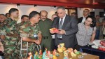 بدوره بين العقيد ياسر الشاويش رئيس فريق “صامدون رغم الجراح” أن المعرض يضم نحو 200 قطعة فنية وأشغال يدوية مصنوعة من “الخشب والفخار والسيراميك” ومعظمها ذات طابع عسكري والتي هي مردود الفريق المادي الذي يدعم من خلاله الجرحى إضافة إلى لوحة حملت عنوان “صمود وأمل “صنعها الفريق ليهديها إلى قائد الوطن.