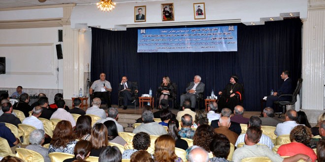 ضمن إطار خطة الدعم النفسي في مطرانية حمص وحماة وتوابعهما للسريان الأرثوذوكس وبالتعاون مع مؤسسة “الفا” الخيرية أقيم مساء أمس في صالة “مار الياس” بقرية فيروزة في ريف حمص ندوة حوارية بعنوان “الأزمة السورية وانعكاسها على المرأة” بحضور حشد من اهالي القرية والمحافظة والمعنيين بقضايا المرأة ورجال الدين.