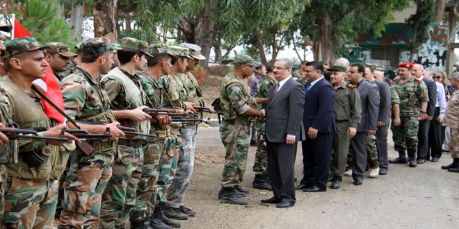 بدوره بين أمين فرع حزب البعث العربي الاشتراكي بالمحافظة غسان أسعد أن عقيدة الشهادة التي طالما تحلى بها الجيش العربي السوري ما زالت عماد كل إنجاز عسكري إلى جانب تلاحم الشعب مع الجيش مشيرا إلى أن مواصلة تدشين المشروعات الخدمية أقوى دليلا على تماسك مؤسسات الدولة واستمرارها في أداء دورها بكفاءة.