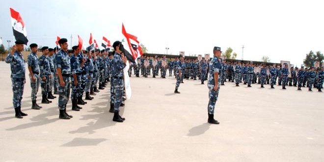 وأكد المشاركون أن قوى الأمن الداخلي التي “امنت بالوطن والشعب والقائد والتي تشارك جنبا إلى جنب مع قواتنا المسلحة في دحر الإرهاب ستظل وفية للسيد الرئيس بشار الأسد مستلهمة من مضامين خطابه واقواله وسديد توجيهاته السعي الدائم إلى الارتقاء إلى مستوى المسؤولية الملقاة على كاهلها في تعزيز هيبة الدولة وسلطة القانون ومكافحة الجريمة وتوفير الأمن والأمان للمواطنين”.