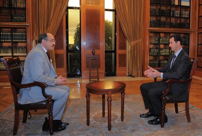 وقال الرئيس الأسد في مقابلة مع قناة الميادين بثتها مساء أمس: لا توجد لدينا مشكلة أن نحاور أي جهة بشرط أن تبتعد عن السلاح والإرهاب ودعوة الأجانب للتدخل في سورية عسكريا أو سياسيا أو بأي شكل من الأشكال.