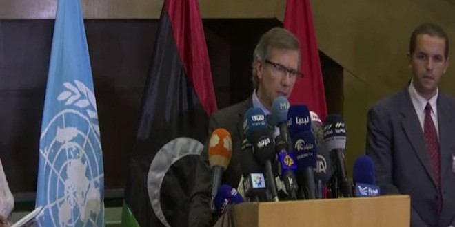 وكان الممثل الخاص للأمين العام للأمم المتحدة في ليبيا أكد امس ضرورة الاتفاق على حكومة وحدة وطنية وجعل الاتفاق المقدم شاملا يمثل كل الليبيين مشيرا الى أن وفد المؤتمر الوطني المنتهية ولايته طالب بتعديلين جديدين في الوثيقة النهائية قوبلا بالرفض لاعتبار أن الوثيقة التي توصلت إليها الأطراف قبل أيام هي وثيقة نهائية لن تعدل وبأن المجتمع الدولي يطالب بتشكيل حكومة الوحدة من دون أي تعديل على الوثيقة.