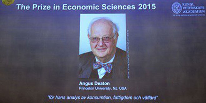 أعلنت أكاديمية العلوم السويدية الملكية اليوم فوز خبير الاقتصاد البريطاني آنغس ديتون بجائزة نوبل للاقتصاد لعام 2015 عن تحليله للاستهلاك والفقر والرفاه.