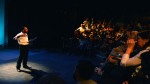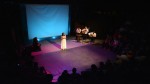 وتضمنت الاحتفالية المسرحية المعنونة بـ “قمر شام” توليفة جميلة من الشعر والموسيقا والغناء في حضرة المسرح حيث قدم كل من الفنان كفاح الخوص والشاعر عدنان أزروني والشاعرة وئام الخوص عددا من القصائد بأسلوب الحوارية في عدد من القصائد والصولو في بعضها الآخر فجاء الشعر الذي تنوع بين الفصحى والمحكية أنيقا ومعبرا ومحفزا ومؤلما في ذات الوقت حيث لامس مشاعر الحضور بمواضيعه المطروحة والتي تمس كل إنسان سوري نتيجة الأزمة الحالية فتفاعل معهم الحضور بالتصفيق تارة والضحك تارة أخرى والتصفيق في أغلب القصائد.