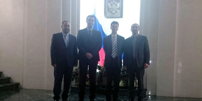 وتسلم رسالة الشكر بالنيابة عن السفير الروسي السكرتير الأول في السفارة الروسية كيريل ايغناتوف والسكرتير الثاني للشؤن السياسية ايفجيني ايفدوكيموف اللذان أعربا عن مواقف بلادهما الداعمة لسورية قيادة وشعبا وجيشا في مواجهة التنظيمات التكفيرية الإرهابية وإعادة الأمن والإستقرار لكل الأراضي السورية.