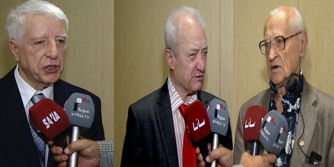 بدوره قال المستشرق والإعلامي الروسي سفيت زاخاروف “أدعم موقف روسيا الاتحادية لجهة محاربة الإرهاب في سورية وتقديم المساعدات العسكرية للجيش العربي السوري في حربه ضد المجموعات الإرهابية التي تسللت إلى سورية من كل حدب وصوب وتقوم على مدى أربع سنوات ونيف بقتل وتشريد السوريين وتدمير وطنهم”.