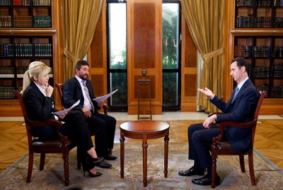 السؤال الأول: السيد رئيس الجمهورية.. بداية أود أن أشكركم على استقبالكم لنا في سورية في هذه المرحلة التي تتعرض فيها لهجمات عالمية منذ ثلاث سنوات وأريد أن أسأل أولا لماذا تم اختيار سورية كهدف لهذه الهجمات العالمية وحيث جميع أنظار العالم تتجه نحو سورية…