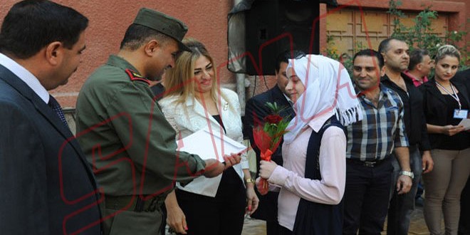 كرم تجمع شباب الوحدة الوطنية ومديرية تربية دمشق اليوم عددا من بنات الشهداء والمتفوقات وذلك بمدرسة الشهيدة سناء محيدلي.