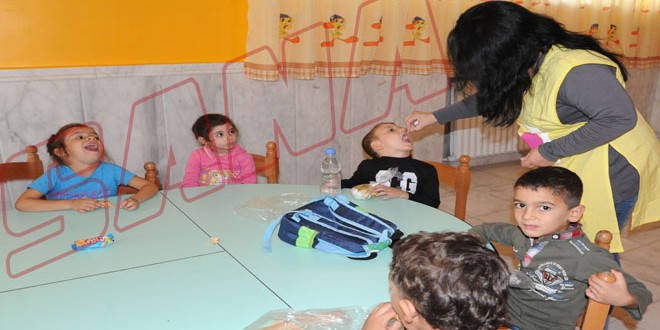 وفي السويداء بينت رئيس دائرة الرعاية الصحية الأولية الدكتورة ناهدة نصر “أن الحملة التي تستهدف54 ألف طفل من خلال 88 مركزا صحيا و31 فرقة جوالة تسير بشكل جيد وإقبال لافت” حيث تم في اليوم الاول لها تلقيح 18 ألف طفل وطفلة.