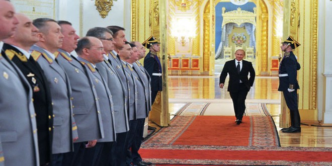 وذكر المكتب الصحفي للكرملين أن الرئيس بوتين سيجتمع مع الضباط اليوم حيث يدور الحديث بالدرجة الأولى حول أهداف وتفاصيل العملية العسكرية الجوية التي بدأتها روسيا في سورية ضد تنظيم “داعش” الارهابي.