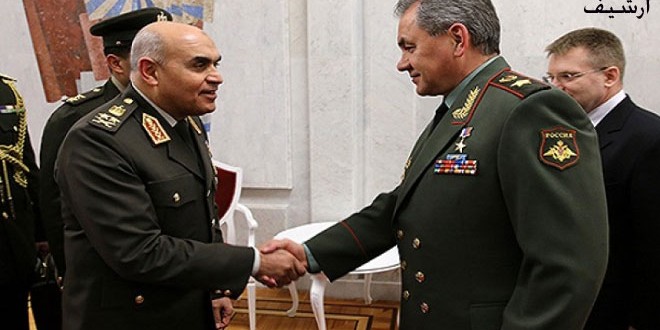 ونقلت وكالة سبوتنيك عن بيان لوزارة الدفاع الروسية قوله “نوقشت خلال الحديث مسائل التعاون العسكري التقني الروسي المصري وأكد الجانب الروسي استعداده لزيادة التعاون المتبادل لرفع إمكانيات القوات المسلحة المصرية كما ناقش وزيرا الدفاع الأوضاع في المنطقة بما فيها سورية”.