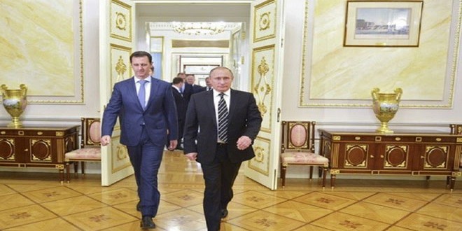 وكان الرئيس الأسد عقد لقاء قمة مع الرئيس بوتين أمس خلال زيارة إلى موسكو تلبية لدعوة من الرئيس بوتين وبحثا كل جوانب محاربة التنظيمات الإرهابية والمسائل المتعلقة بمتابعة القوى الجوية الروسية دعمها للعمليات التى تقوم بها القوات المسلحة السورية ضد الإرهاب الذى يشكل خطرا ليس على الشعب السورى فقط بل على شعوب المنطقة والعالم.