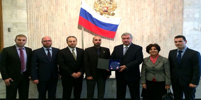 جاء ذلك خلال لقاء جرى في مقر السفارة الروسية في صوفيا بمبادرة من فرع الاتحاد الوطني لطلبة سورية والسفارة السورية في بلغاريا تم خلاله تقديم درع تذكاري للسفير الروسي تعبيرا عن الشكر العميق لمواقف بلاده الداعمة لسورية.