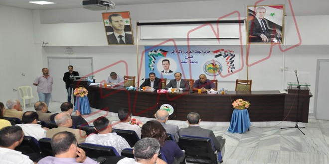 وأكد رئيس الجامعة الدكتور أحمد مفيد صبح أن الجامعة امنت جميع مستلزمات العملية التعليمية للعام الدراسي الجديد بينما أشار أمين فرع جامعة البعث لحزب البعث العربي الاشتراكي الدكتور محمد عيسى إلى ضرورة التعاون بين جميع العاملين لتقديم افضل الخدمات الادارية والطلابية والحفاظ على الممتلكات العامة ومعالجة كل القضايا التربوية والثقافية والعلمية ضمن الامكانات المتاحة.
